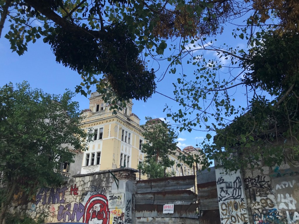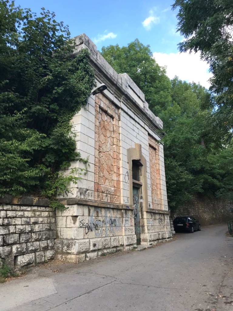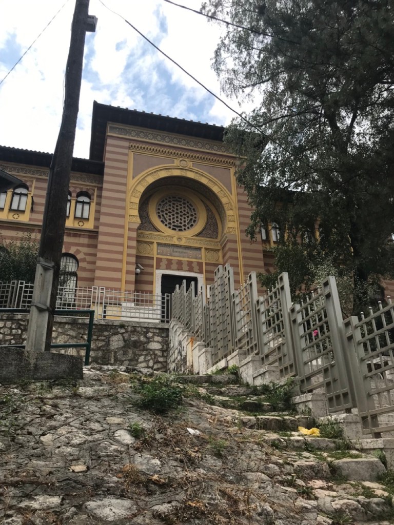 Der Weg neben dem Fluss endet bei einer Synagoge, doch es zieht uns weiter stadteinwärts. Es ist schön, auch die weniger touristischen Seiten Sarajevos zu erkunden. Wir finden auch einen kleinen Spielplatz, die Kinder sind sehr erfreut.