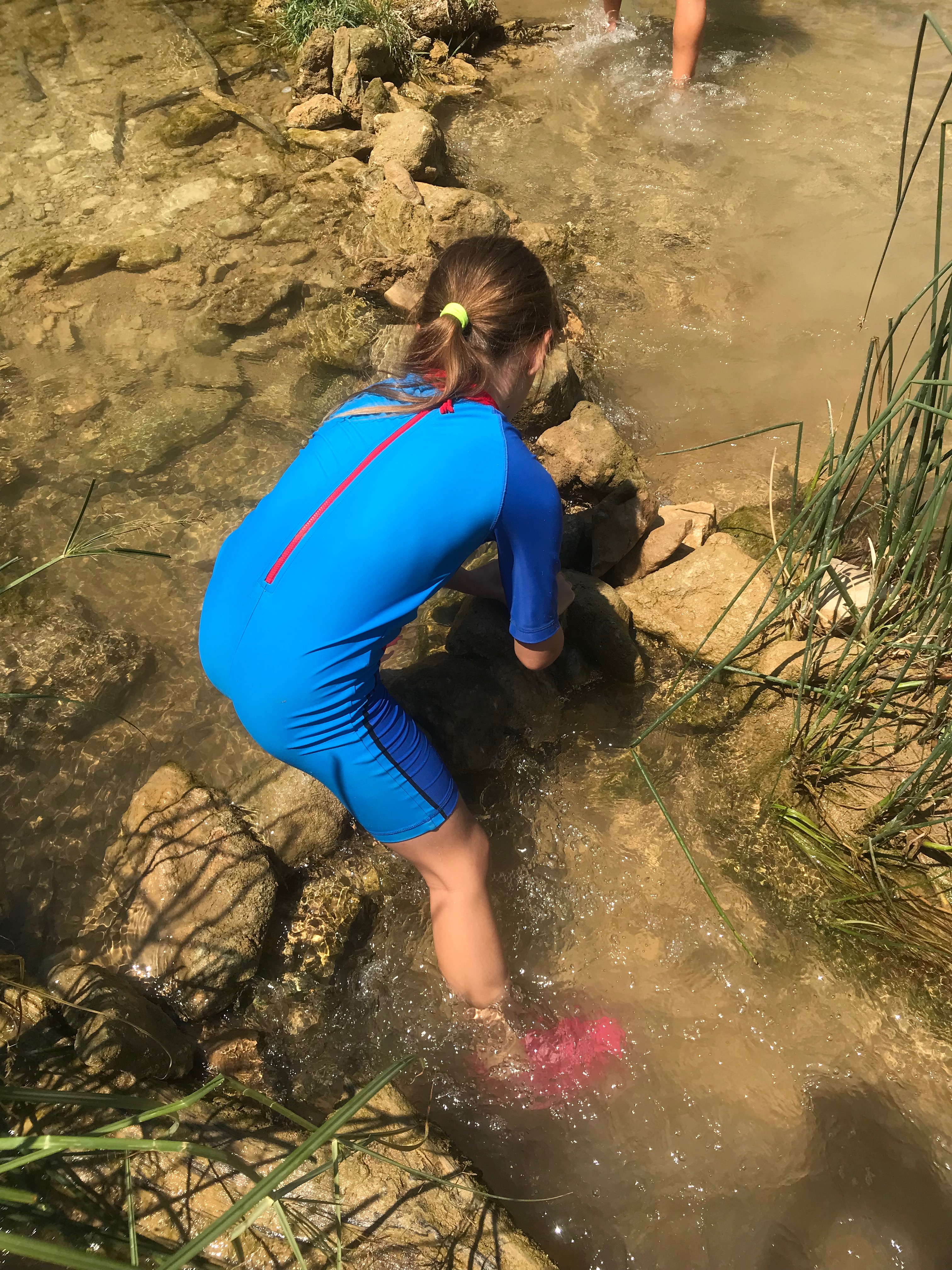 Kurz vor unserem Ziel müssen wir leider eine Pause einlegen. Die kurvigen Straßen haben dem 4-Jährigen zugesetzt und wir müssen nicht nur ihn, sondern auch das Auto reinigen. Bei knapp 40 Grad eine ziemliche Herausforderung. Die 7-Jährige meint, dass die Oma zu schnell gefahren sei ….