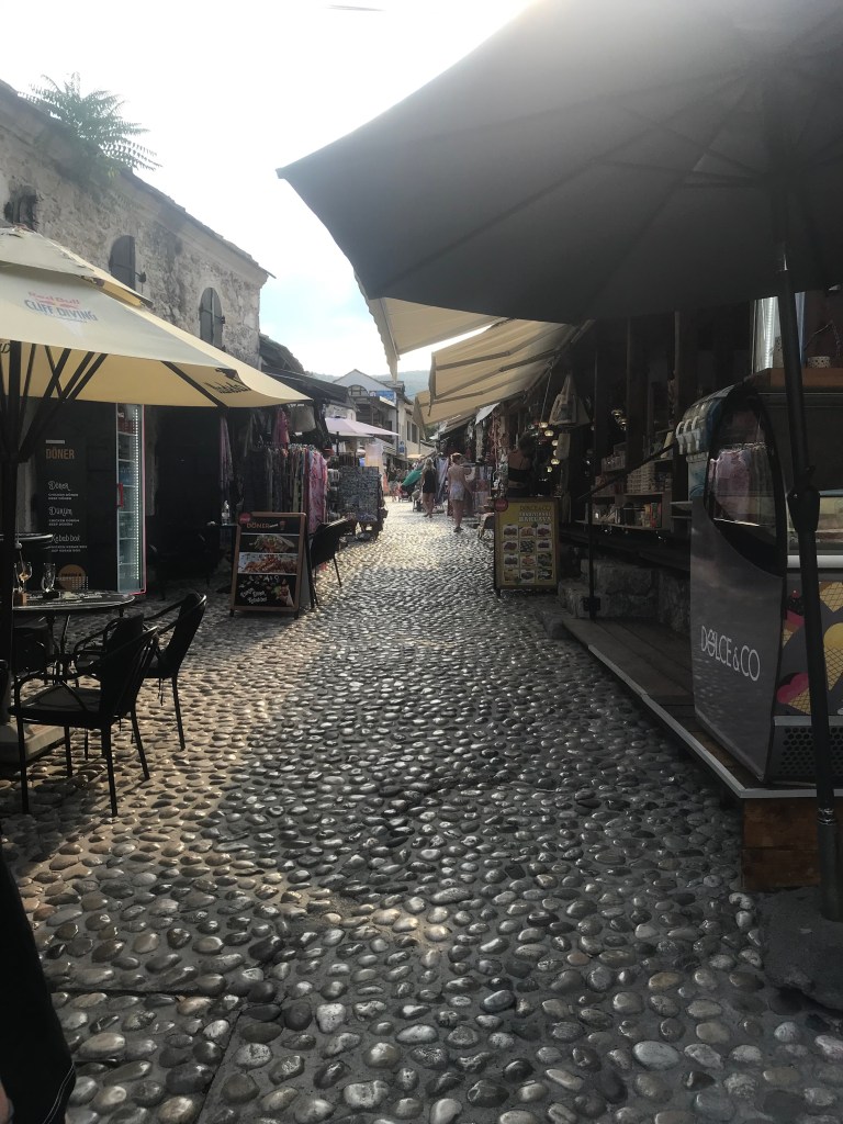 In Mostar sind wir verliebt und wollen eigentlich noch länger bleiben. Die Stadt hat für uns eine besondere Ausstrahlung, eine besondere Atmosphäre. Es gibt auch hier noch zahlreiche Spuren des letzten Krieges. Häuser, die verfallen und Einschusslöcher an Fassaden. Die Menschen, denen wir begegnen, sind sehr freundlich und sprechen auch sehr gut Englisch.