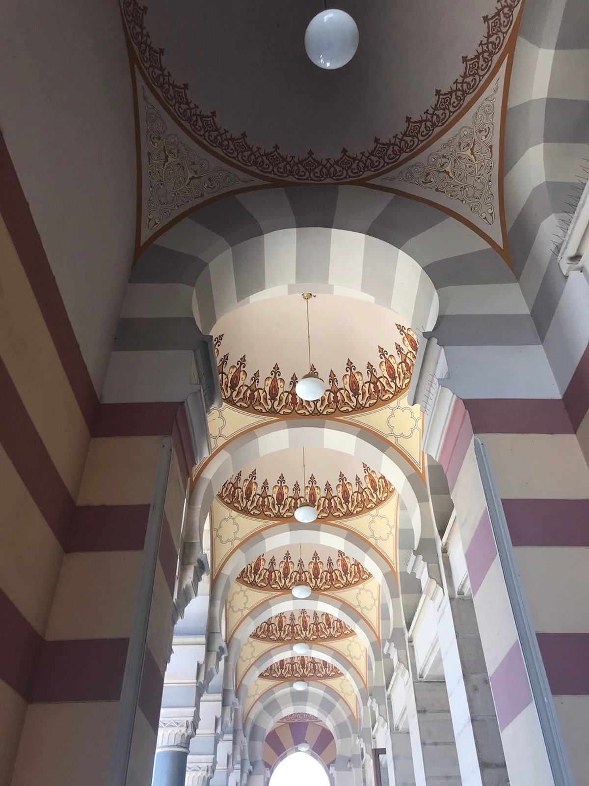 In der Altstadt, Baščaršija, herrscht ein buntes Treiben. Wir lassen uns vom Touristenstrom einfach mittragen und staunen über alle die kleinen Geschäfte, die alles Mögliche anbieten. Dazwischen gibt es immer wieder Moscheen, Kirchen und Tempel. Und natürlich Restaurants und kleine Lokale mit Streetfood. Es ist brütend heiß und die Kinder werden allmählich unruhig – also machen wir uns auf die Suche nach einem Park bzw. Spielplatz. Google zeigt uns nichts an, und wir werden tatsächlich nicht fündig. Wir essen statt dessen noch den besten Falaffel Wrap und Čevapi und machen uns auf den Weg zurück Richtung Unterkunft. Und da – die Kinder entdecken einen versteckten Spielplatz. Jetzt können auch sie sich noch ein wenig austoben.