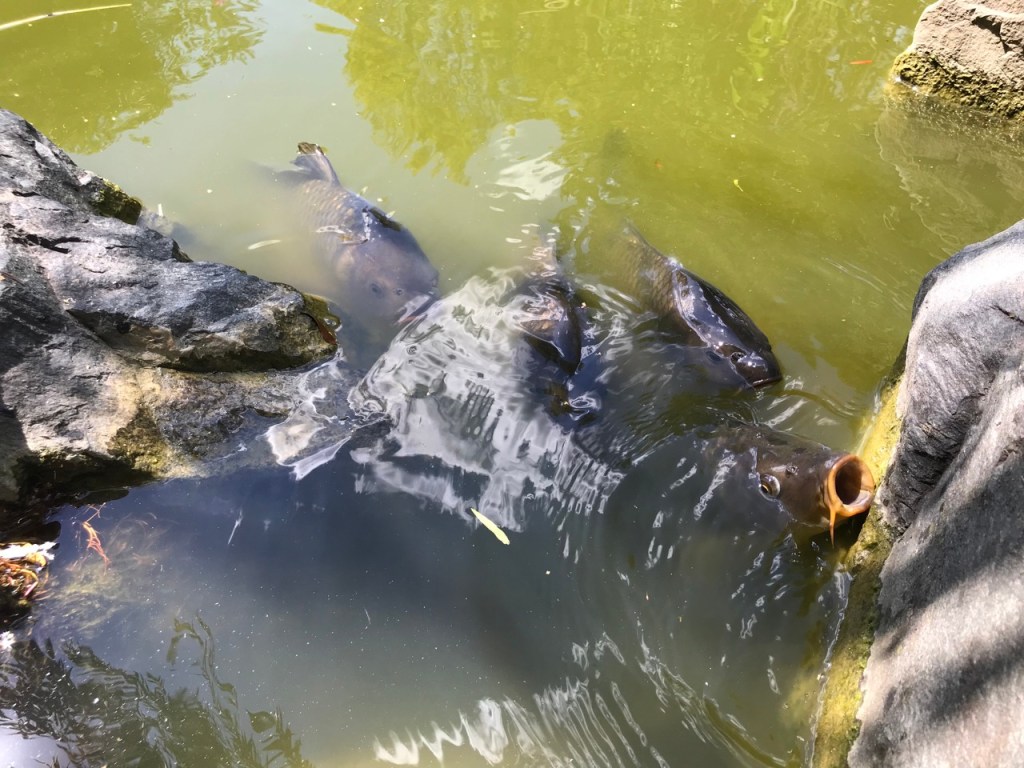 Die Fische im Biotop sind so zutraulich und besuchsfreudig wie die Eichhörnchen in Schönbrunn.