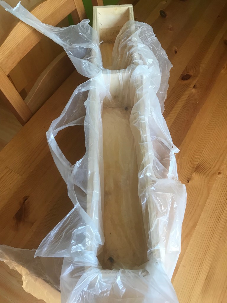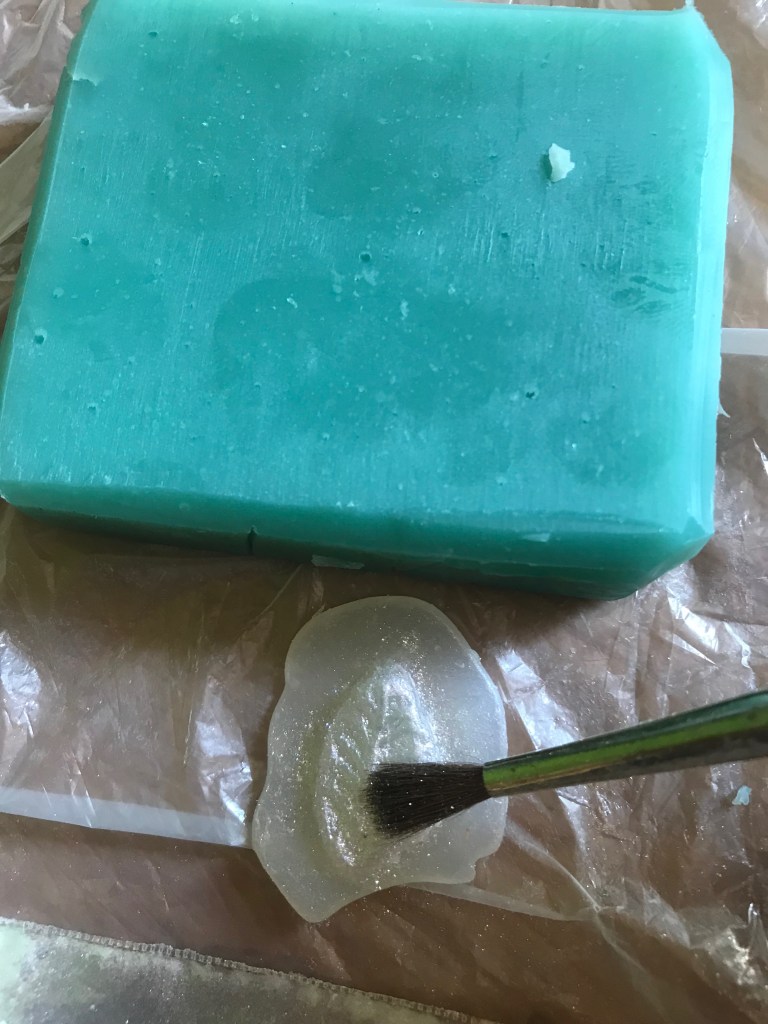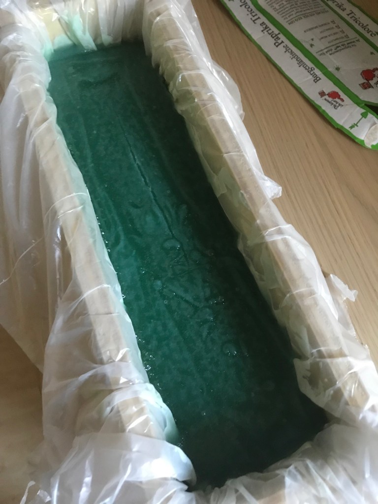 Sodala – ein Tag später. Die Seife ist fertig und wird jetzt geschnitten und noch ein bisschen aufgepeppt.