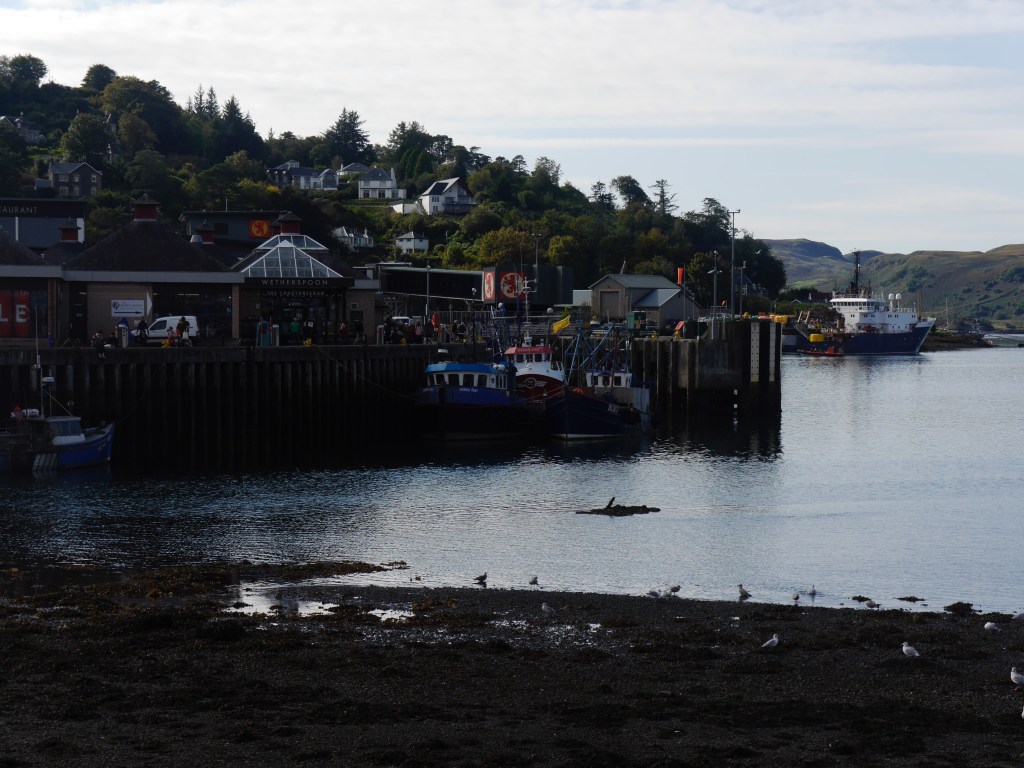 Wir wohnen ein wenig außerhalb der Ortschaft Taynuilt, das am Loch Etive liegt, in einem kleinen schnuckeligen Holzhäuschen. Drinnen scheint es aber kälter zu sein als draußen. Hui, das kann was werden. Da wir noch nichts gegessen hatten, räumten wir nur das Auto aus und fuhren in den nächst größeren Ort, Oban, um etwas zu essen und einzukaufen.