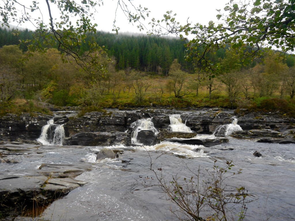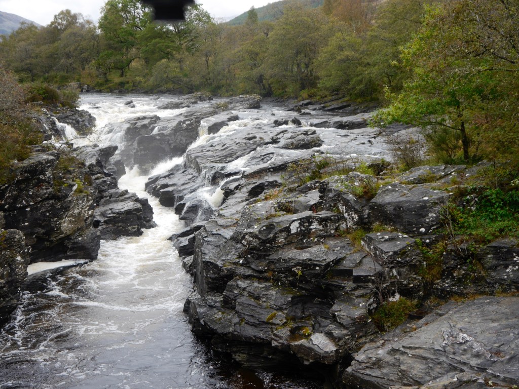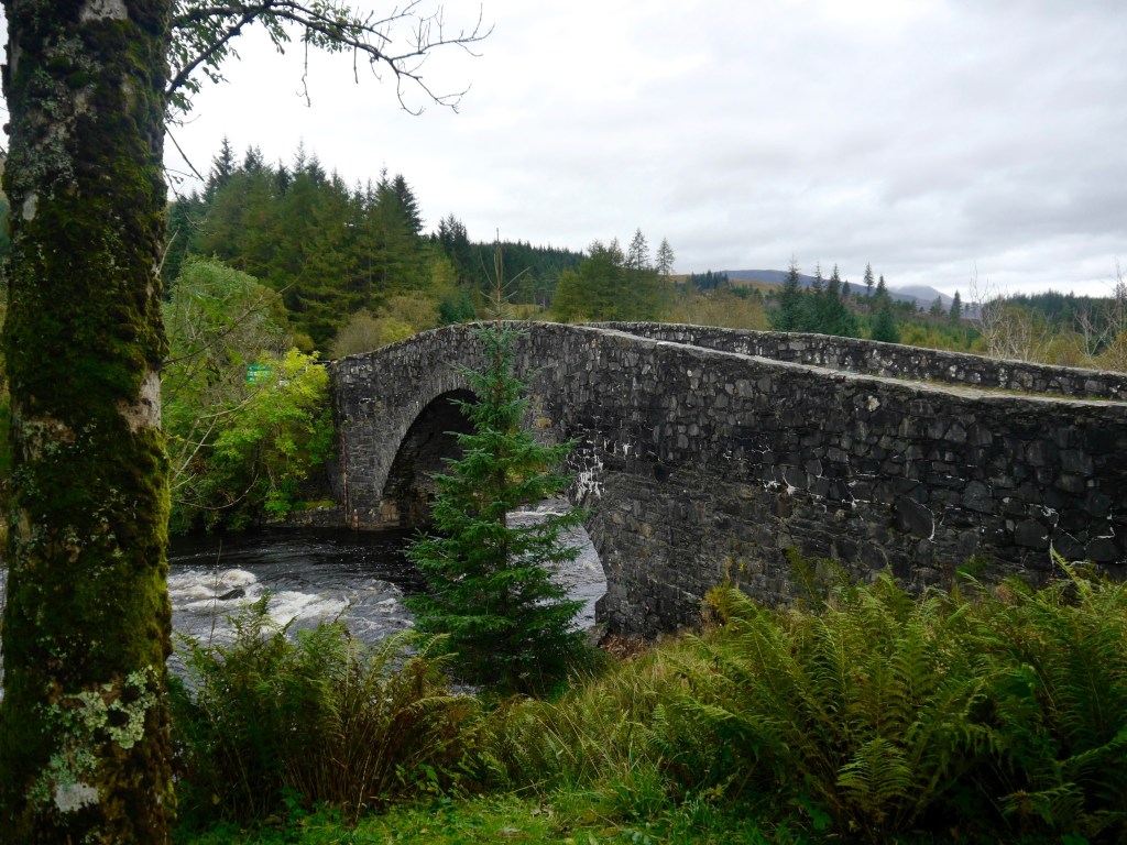 Wir fahren zuerst Richtung Lochawe, den Loch Awe haben wir schon an Tag 2 umrundet. Wir wenden uns nun nach Norden Richtung Bridge of Orchy auf eine Single Lane Road. Auf dem Weg halten wir mehrmals an, denn es gibt hier zahlreiche Wasserfälle. In Bridge of Orchy halten wir ebenfalls, um die schöne bridge zu fotografieren. Hier treffen wir auf den West Highland Way, auf dem schon meine Schwester gewandert ist.