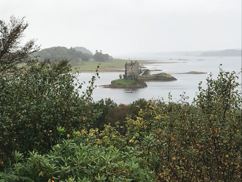 Nach diesem erquickenden Spaziergang fahren wir weiter zum Viewpoint für das Castle Stalker, das wir am Vortag verpasst haben. Es regnet und es ist sehr windig, alles in allem kein schönes Outdoor Wetter. Wir überlegen kurz, ob wir schon nach Hause fahren sollen, um uns den restlichen Tag im Bett zu verkriechen. Aber eine Sache, die ich gerne sehen würde, wäre da noch. In der Nähe (wir kommen auf unserem Heimweg daran vorbei), befindet sich Glen Creran wo es ganz im Wald versteckt eine Fairy Bridge gibt. Wir möchten diese Fairy Bridge unbedingt finden, auch wenn wir den Weg dorthin nicht genau kennen.