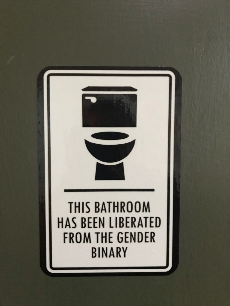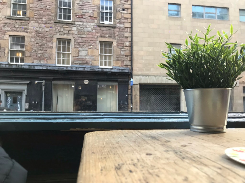 Es regnet, dauernd werden wir von Touristen angerempelt und wir haben Hunger. Also schnell weg und auf in den nächsten Pub. Nicht den Nächsten, wir spazieren noch ein Weilchen gemütlich eine Straße hinter der Universität entlang, in der sich ein Charityshop an den Nächsten reiht. Dort finden wir auch einen Pub, der vegane Optionen anbietet. Ich bin entzückt, dass mich der fesche Bartender alle Biere kosten lässt, bevor ich mich für eins entscheiden muss. An der Bartheke steht ein Schild: No Racism! No Sexism! No Homophobia! Nor any kind of Assholery! … Solche Schilder müsste es bei uns auch geben.