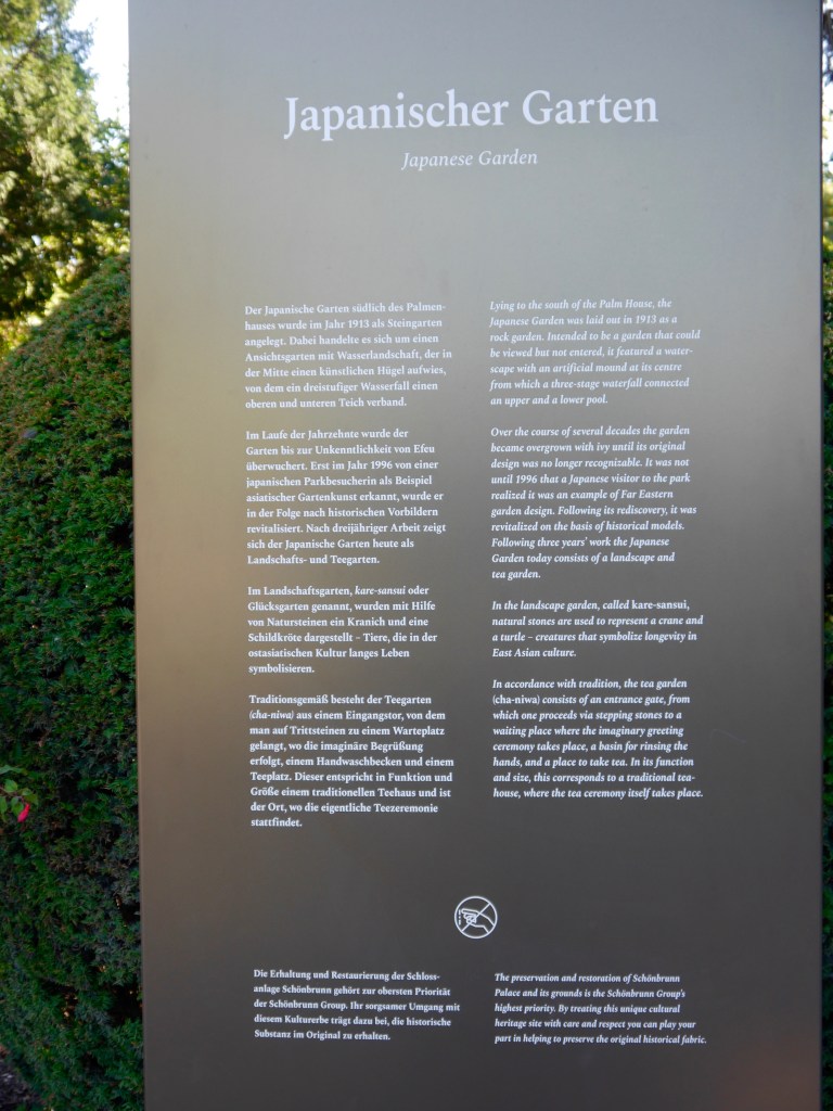 Hinter dem japanischen Garten steht das imposante Palmenhaus und man erhascht auch einen Blick in den Bezirk Hietzing.