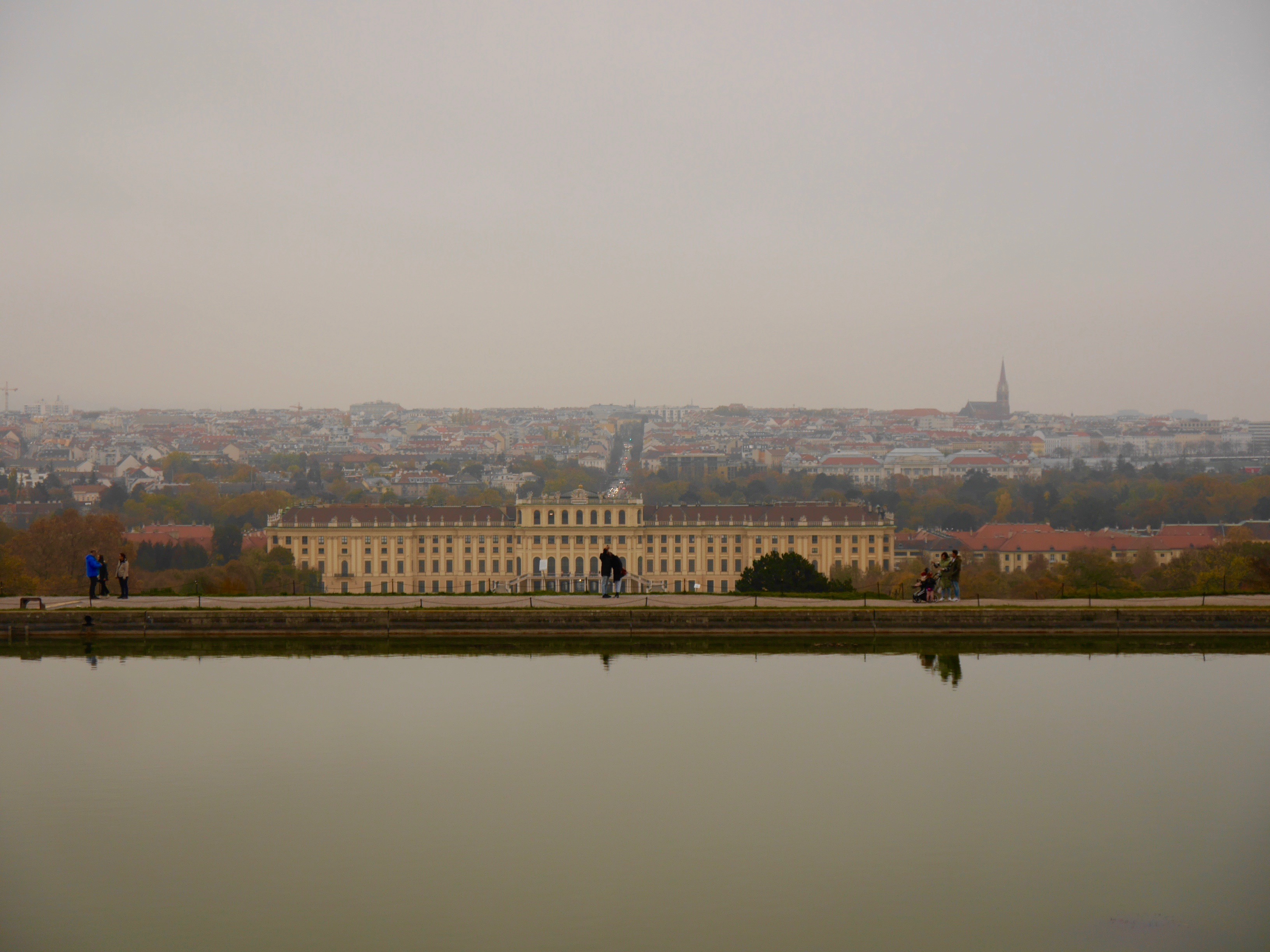 Und schon taucht die Gloriette vor mir auf. Im Inneren befindet sich ein Café mit Gastgarten hinter dem Gebäude. Aufs Dach kann man auch steigen, das kostet aber ein paar Euro.