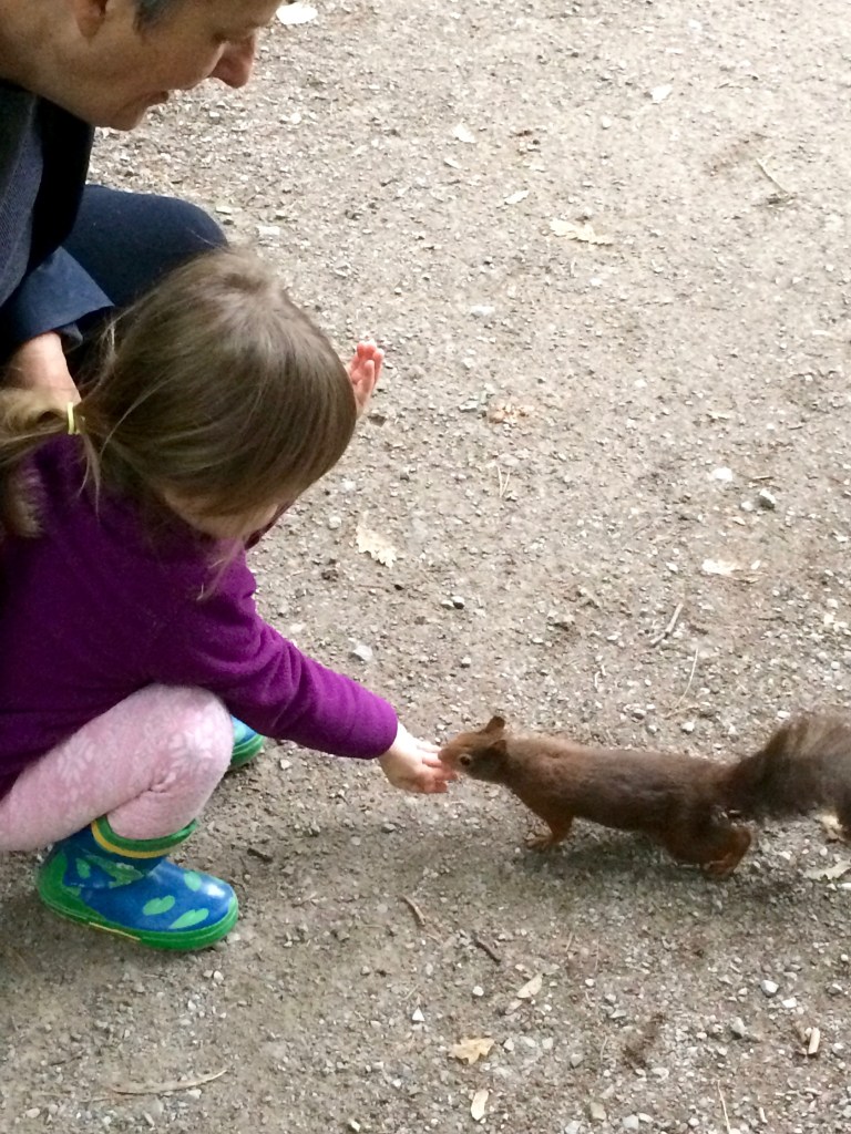 Übrigens gibt es sehr viele Eichkätzchen im Park, manche von ihnen sind richtig zutraulich und lassen sich füttern.