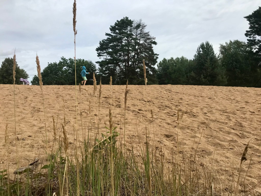 Unser letzter voller Tag ist angebrochen und heute lacht uns zu Abwechslung mal die Sonne entgegen, auch wenn die Temperaturen zu wünschen übrig lassen. Wir sind ein bisschen traurig, denn in der Umgebung gibt es unzählige Seen und eigentlich hatten wir vor, ausgiebig zu baden. Wir haben aber noch einen Naturpark etwa 20-30 Minuten südlich von uns gefunden, den wir noch unbedingt sehen wollen, und er liegt am See Veselské pískovny. Wir planen ein Picknick, daher statten wir Tesco noch einen Besuch ab. (Doris hat gewisse Vorbehalte den tschechischen Mehlspeisen gegenüber – und sie möchte ihnen noch eine Chance geben). Am See angekommen spazieren wir bis zu den Sand dunes u Vlkova die mitten im Wald liegen, etwa 1 ha groß. Es ist malerisch schön. Hier lassen wir uns gern nieder zu einem Picknick, die Kinder sind begeistert von der großen „Sandkiste“ und wir genießen die warmen Sonnenstrahlen. Die Mohnkrone bestätig leider die Vorbehalte, sie schmeckt eigenartig undefinierbar und so wandert sie ungegessen zurück ins Sackerl – das kommt bei Doris sonst NIE vor 🙂 .