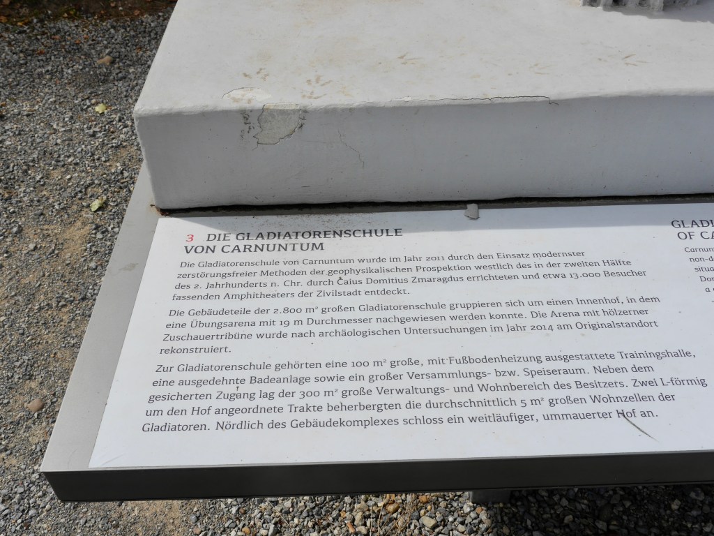 Heute habe ich wieder einen Ausflugstipp, den man gut mit und ohne Kinder machen kann. Einen Steinwurf von Wien entfernt liegt die ehemalige Römerstadt Carnuntum. Ich bin schon so oft vorbeigefahren, aber diesmal bin ich stehen geblieben und bin eingetaucht in die römische Welt von vor über 2000 Jahren. Von der damaligen Stadt mit geschätzten 50.000 Einwohner:innen sind nur etwa 0,5% freigelegt. Diese 0,5% sind verteilt im ganzen Ort, der heute Petronell-Carnuntum heißt. Ich habe mir das römische Stadtviertel angesehen, das Amphitheater Zivilstadt, die Gladiatorenschule und das Heidentor.