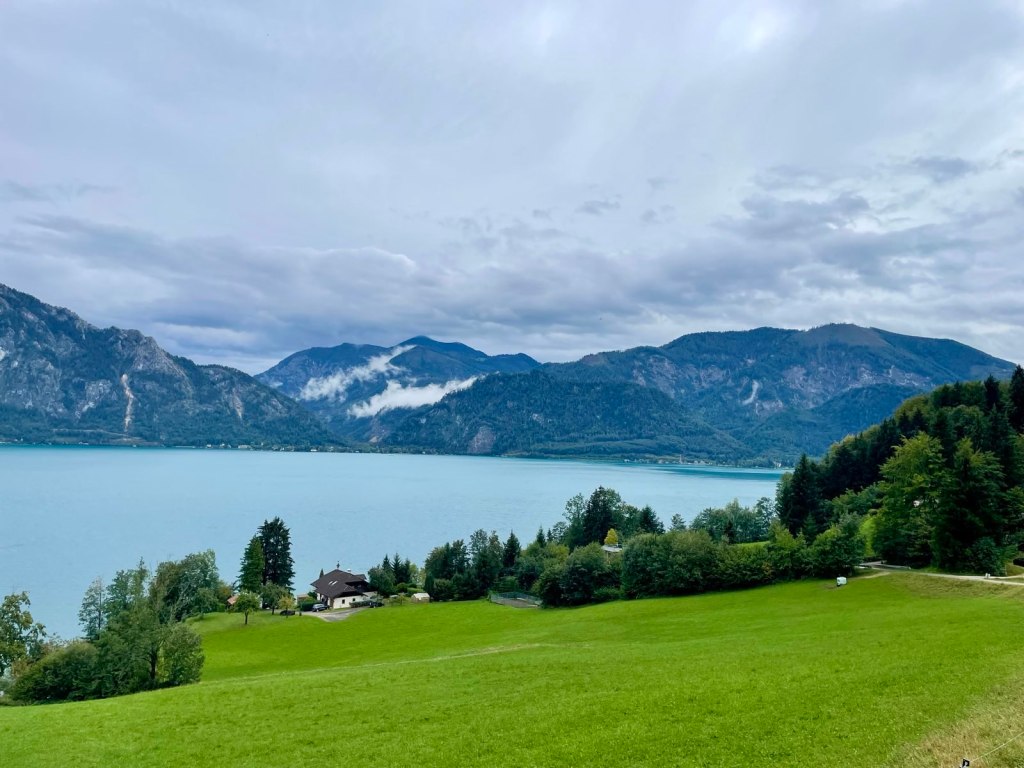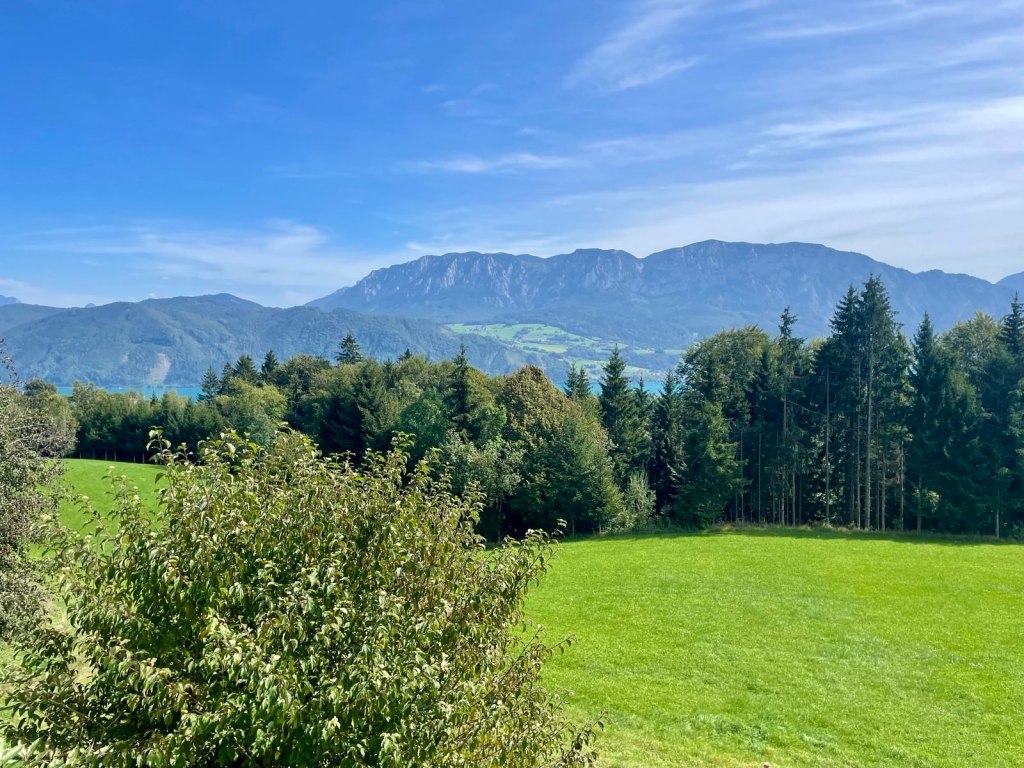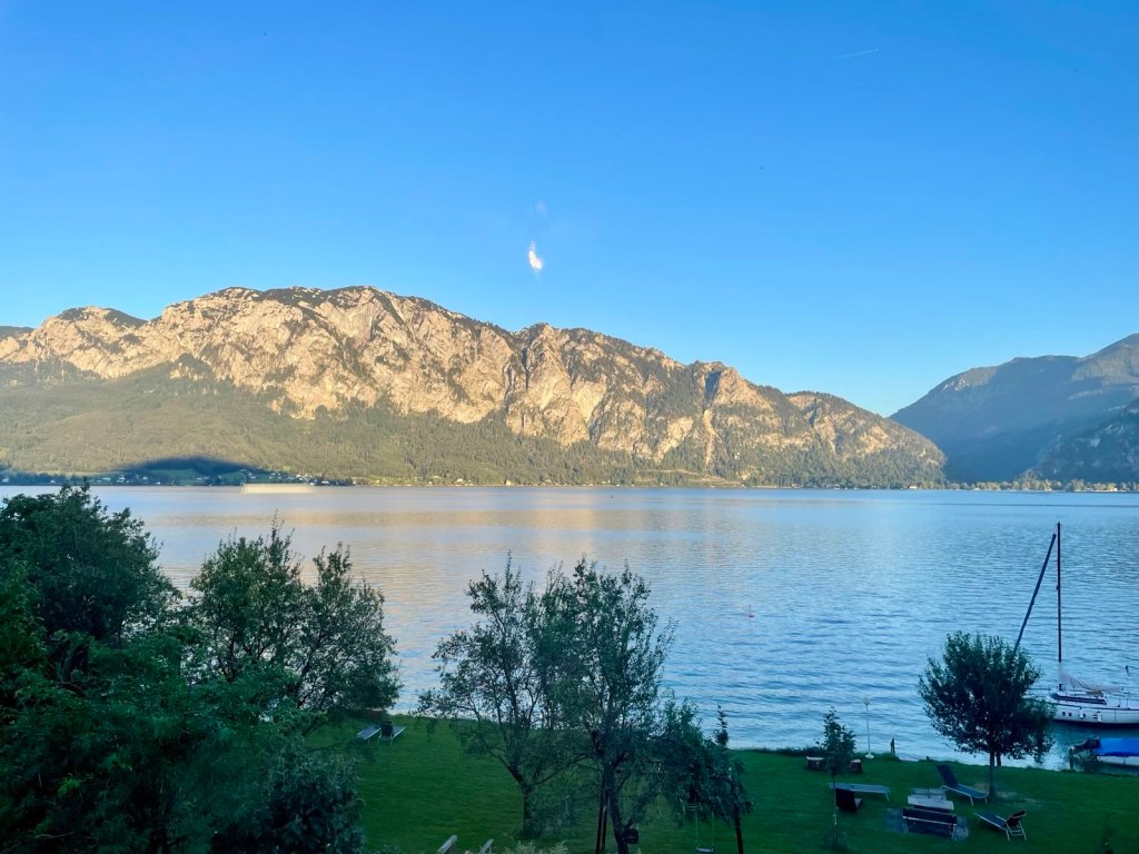 Diesen Spruch über See und Meer hab ich vor einigen Jahren zum ersten Mal gehört, und tatsächlich hing er im Stiegenhaus unserer Unterkunft in Buchenort am Attersee, wo ich den jährlichen Urlaub mit der Berlintochter verbringe. Ich kann ihm zwar nicht zu 100 Prozent zustimmen, das Meer liebe ich viel zu sehr dafür, aber im schönen Salzkammergut gibt es wirklich die schönsten Seen Österreichs. Als die Kinder noch klein waren, haben wir ein paar Urlaube hier am Attersee verbracht – einem der schönsten Seen in Österreich (behaupte ich mal). Damals waren wir immer in Steinbach, am Fuße des Höllengebirges gelegen, mit direktem Seezugang mit Bootshaus und Schwimmsteg und Tretbooten und Ruderbooten. Schöne und erholsame Tage haben wir hier verbracht und die Kinder schwärmen noch heute davon.