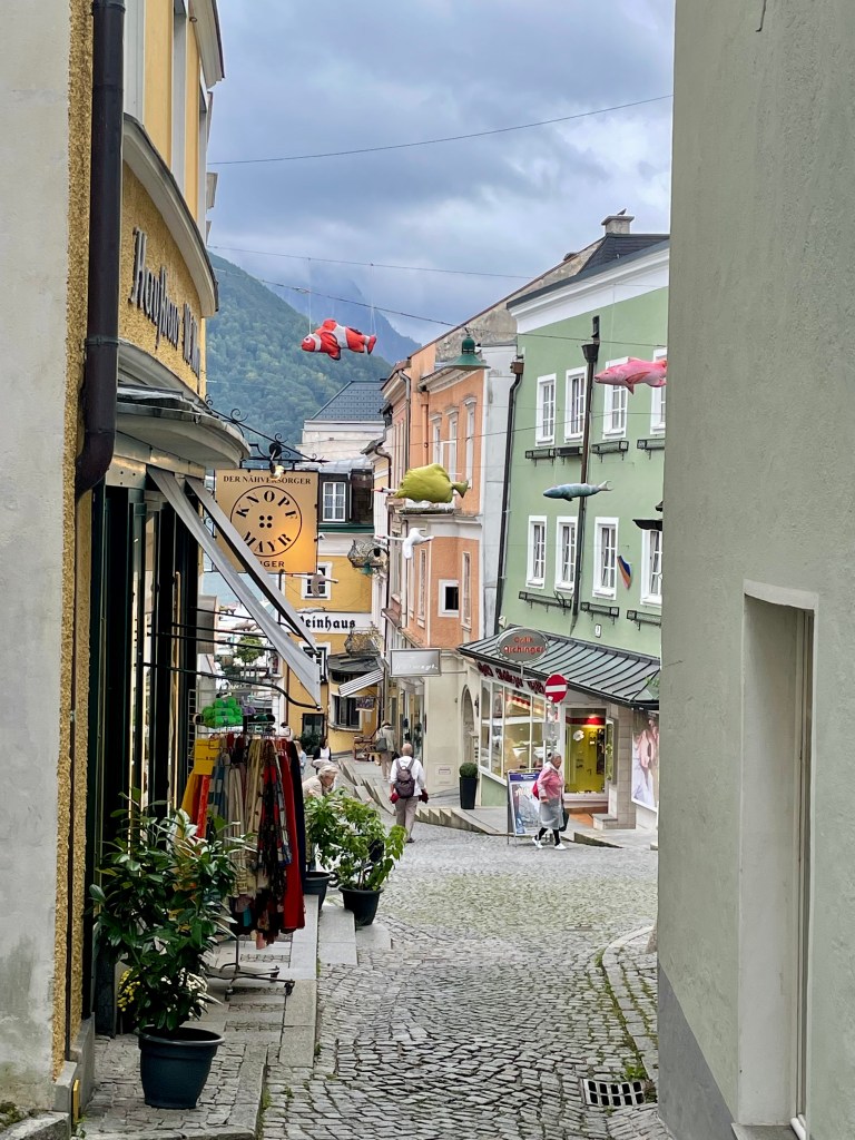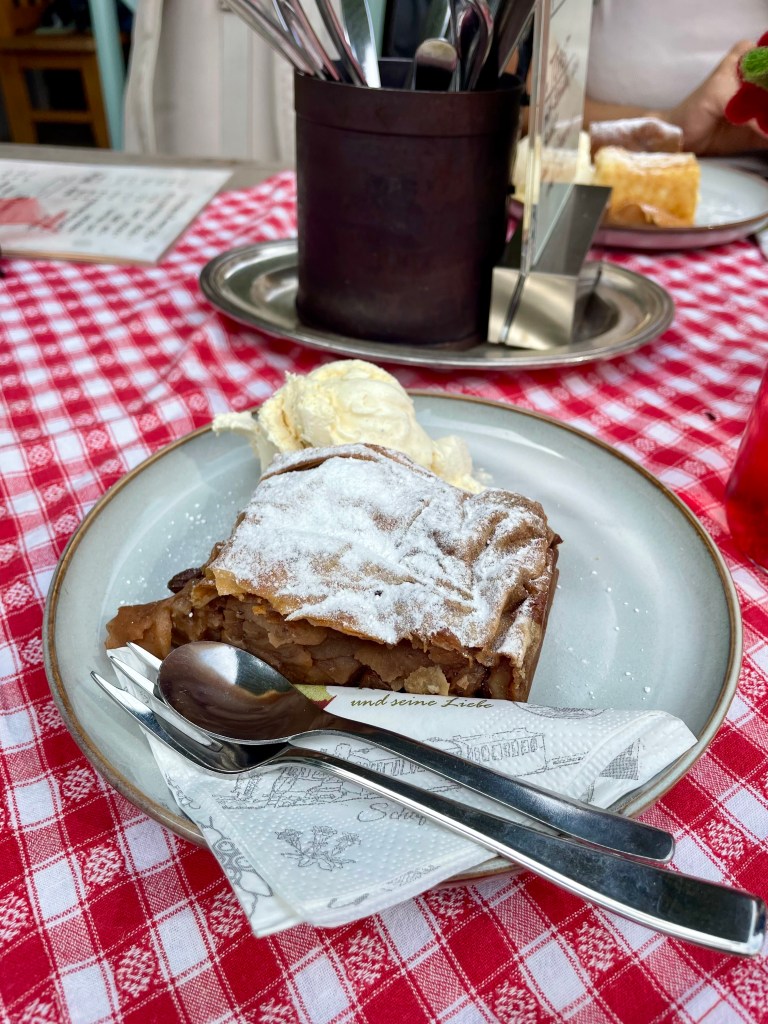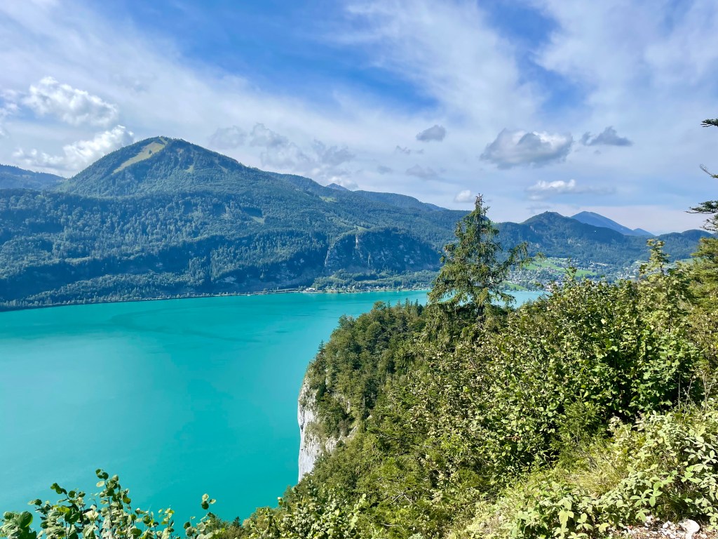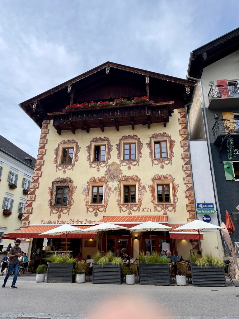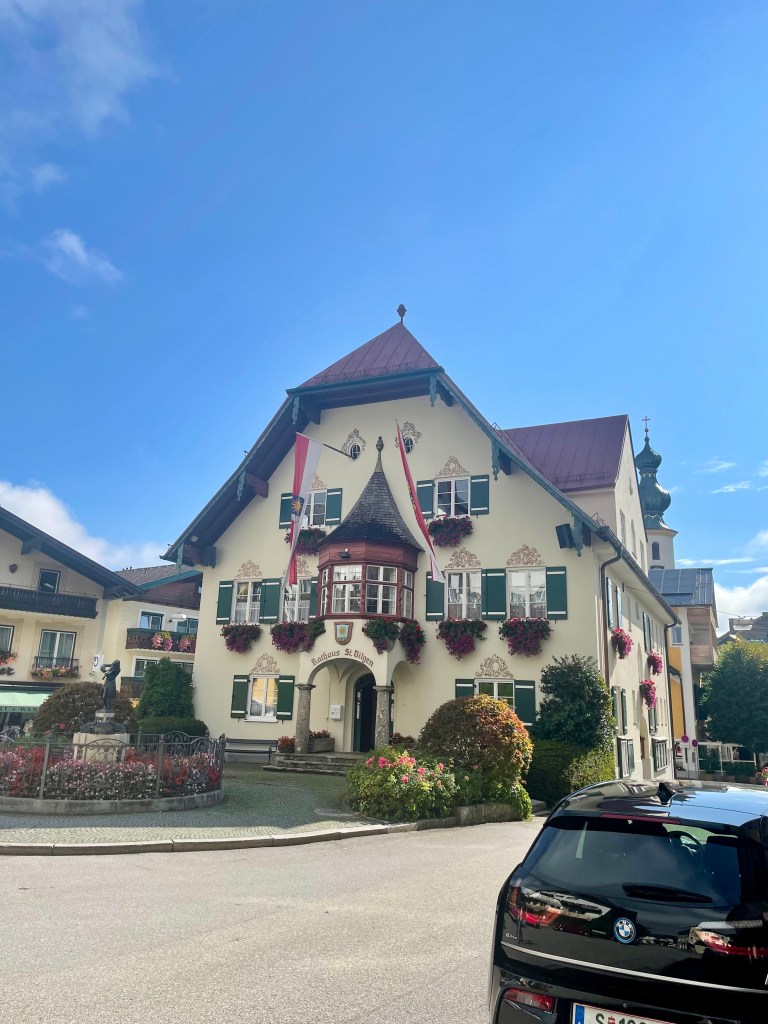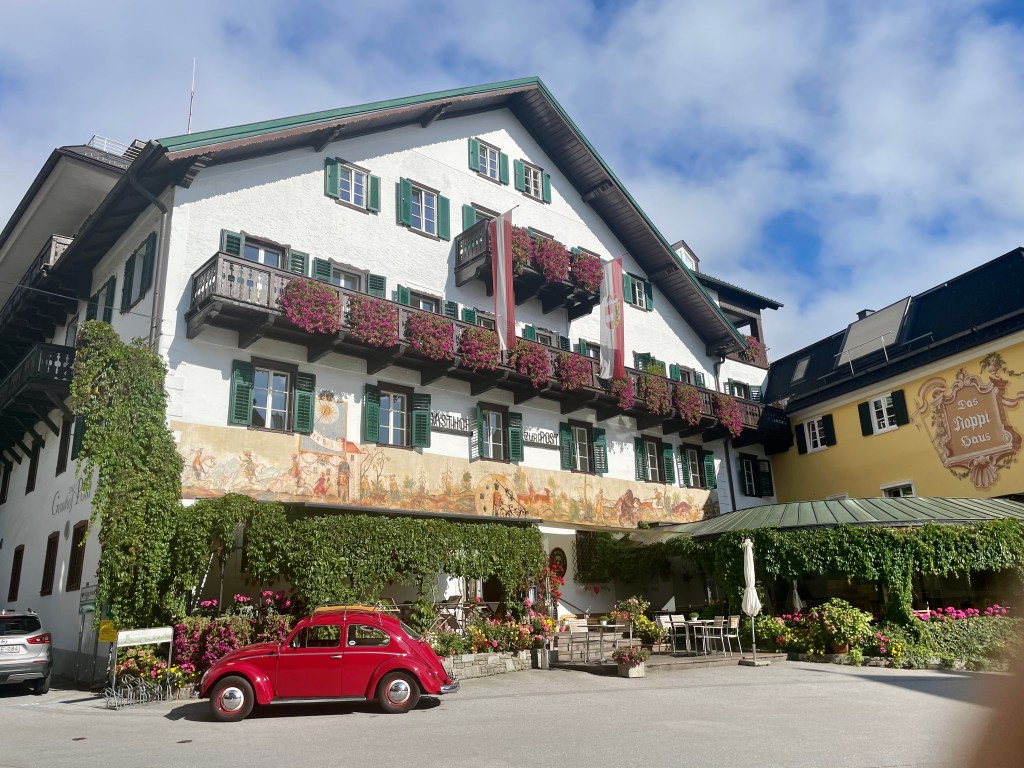 Nach über drei Stunden kommen wir glücklich, verschwitzt und müde in St. Wolfgang an. Diese Wanderung ist unser zweites Highlight der Woche. St. Wolfgang ist noch viel schnuckeliger als St. Gilgen. Und viel kitschiger und viel voller mit Touristen. Ist uns aber egal, wir sind viel zu beseelt von dieser unglaublich schönen Wanderung und lassen uns durch die Gässchen treiben, staunen über die Häuserfassaden, kaufen Souvenirs, machen Fotos vom weißen Rössl und essen wohlverdienten Apfel- und Topfenstrudel (für unsere deutschen Leser:innen – Quarkstrudel 🙂 und fahren dann gemütlich per Schiff zurück nach St. Gilgen.