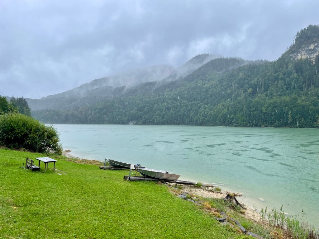 Die beiden letzten Tage unseres Urlaubs am Attersee sind leider wirklich geprägt von heftigem Regen, und was wir noch nicht ahnen – dies führt zu den schweren Überschwemmungen und Hochwasser in vielen Teilen des Landes. An einem Tag umrunden wir trotzdem noch den schönen Schwarzensee – oberhalb vom Wolfgangsee gelegen. Sind aber nach einer Stunde trotz Regenhosen und Regenjacken nassgefroren. Am zweiten Regentag fahren wir in die Therme nach Bad Ischl und lassen es uns dort im warmen Thermalwasser und in der Sauna gut gehen.