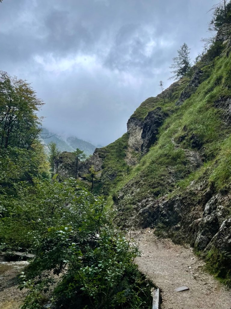 Tags darauf zeigt das Regenradar dauerhaften Regen im Atterseegebiet, aber nicht am Traunsee. So machen wir einen Ausflug über die Großalmstraße „hinüber“ zum Traunsee nach Gmunden. Die Großalmstraße ist eine malerische Panoramastraße, die sich durch ein großartiges Wandergebiet schlängelt. Hier könnten wir tagelang wandern und die Natur genießen. Wenn es nicht regnen würde…