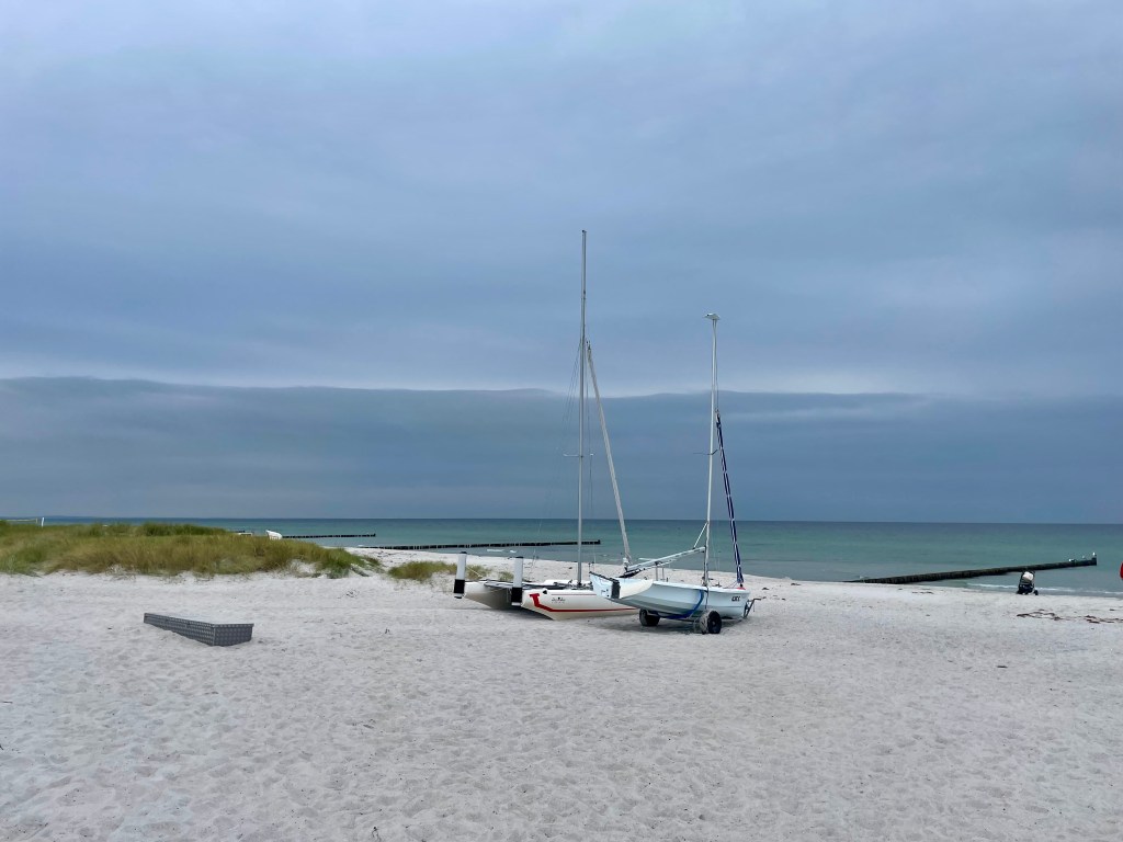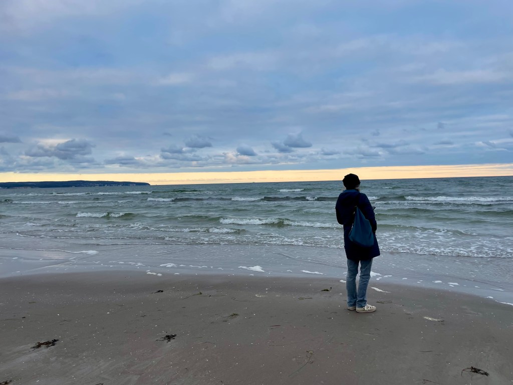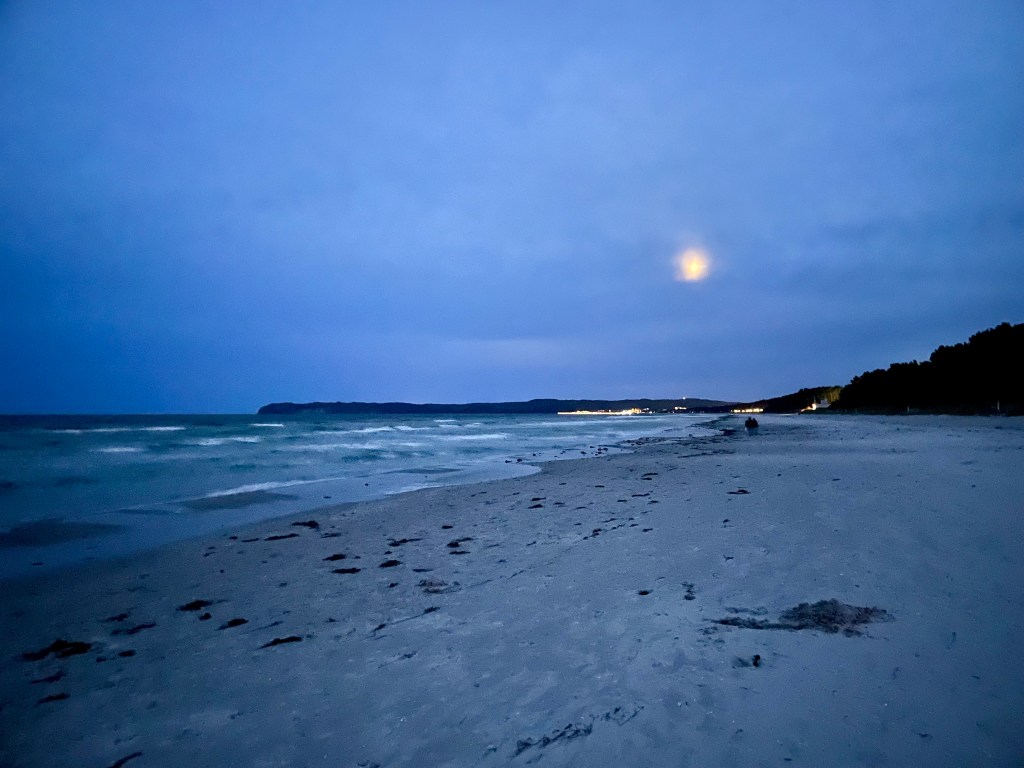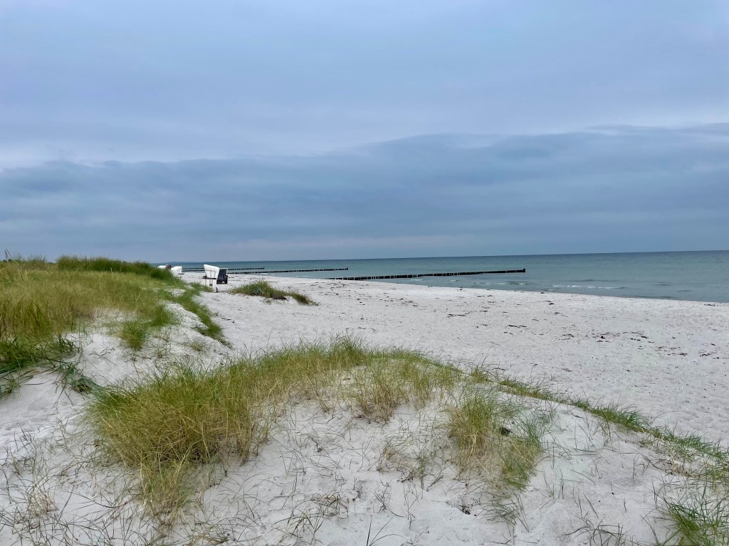 Was wir sonst noch so machen? Jeden Tag spazieren wir zu „unserem“ Strand hinter dem Koloss von Prora. Der Sand ist fest und so machen wir kilometerlange Spaziergänge, genießen das besondere Flair und lassen uns die Meeresbrise um die Nasen wehen!