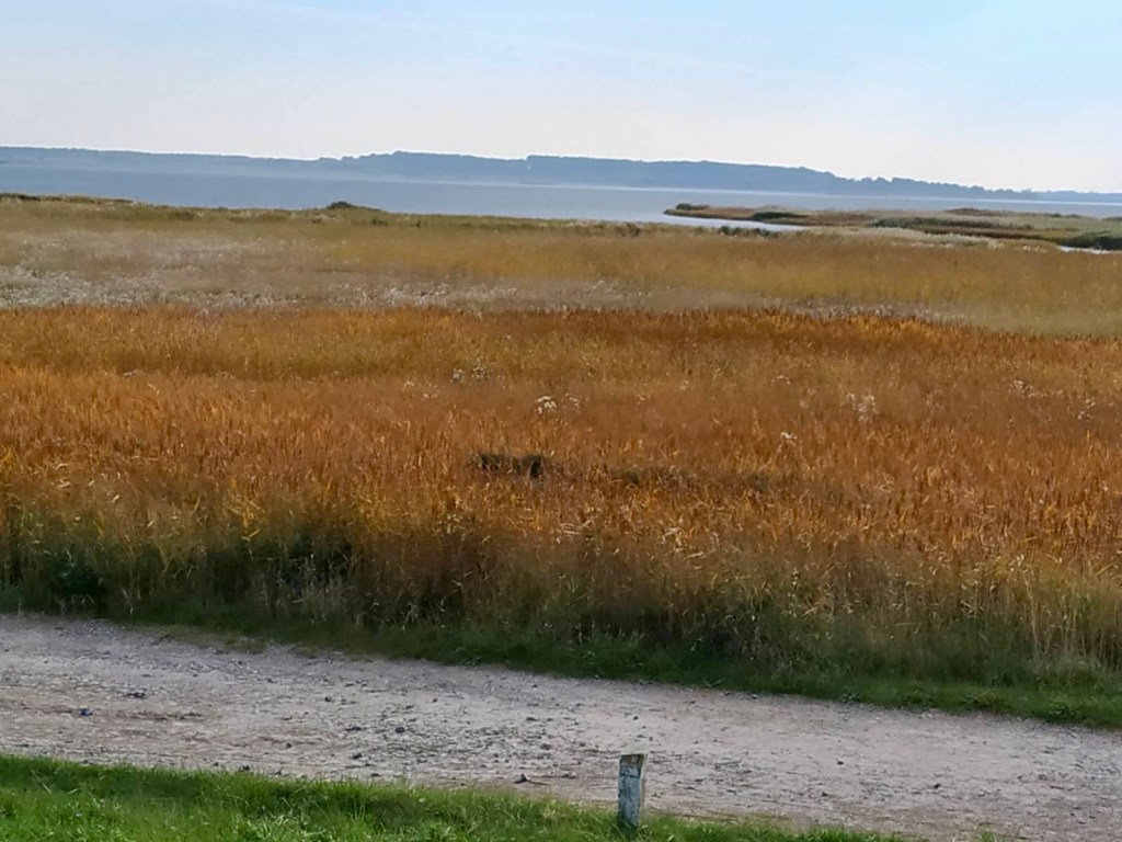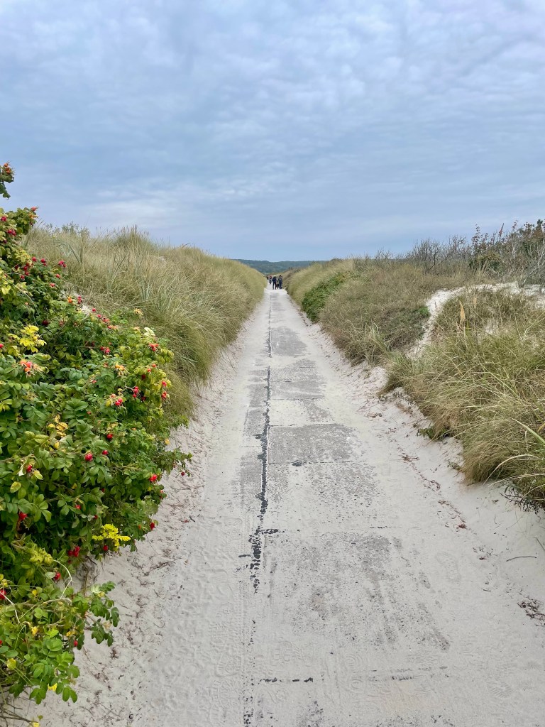 Unser erster Ausflug führt uns auf die kleine Insel Hiddensee, eine malerische, autofreie Ostseeinsel westlich von Rügen. Bekannt für ihre unberührte Natur, ihren Charme und ihre ruhige Atmosphäre, zieht Hiddensee jedes Jahr zahlreiche Besucher:innen an, die Erholung und Naturerlebnisse suchen, so auch uns. Mit nur etwa 17 Kilometer Länge und knapp 4 Kilometer Breite ist sie eine kleine und überschaubare Insel. Besonders markant ist der Dornbusch mit seiner Steilküste und dem weithin sichtbaren Leuchtturm, der als Wahrzeichen der Insel gilt. Die Landschaft auf Hiddensee besteht aus Dünen, Heiden, Wiesen und Wäldern und bietet eine große Artenvielfalt an Tieren und Pflanzen. Wir fahren mit der Fähre von Schaprode auf Rügen in den Ort Vitte und spazieren gemütlich bis Kloster durch eine malerisch schöne Heidelandschaft.