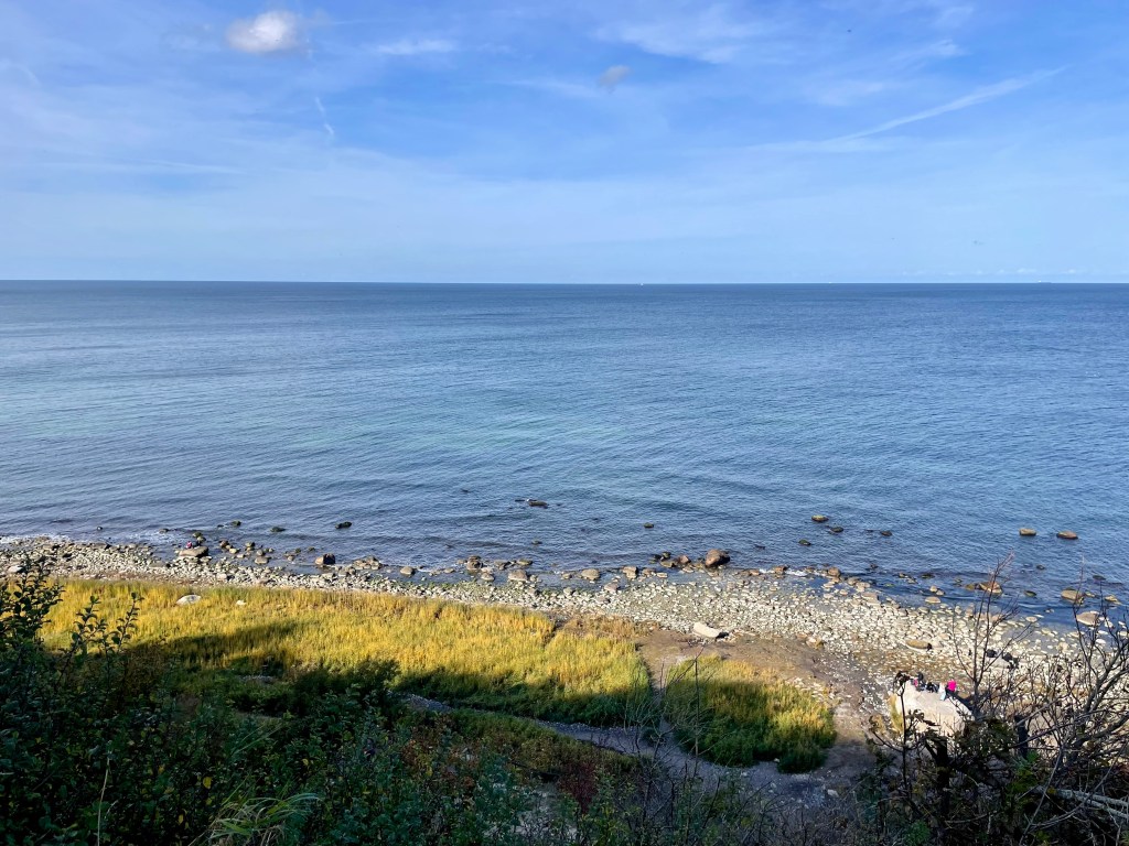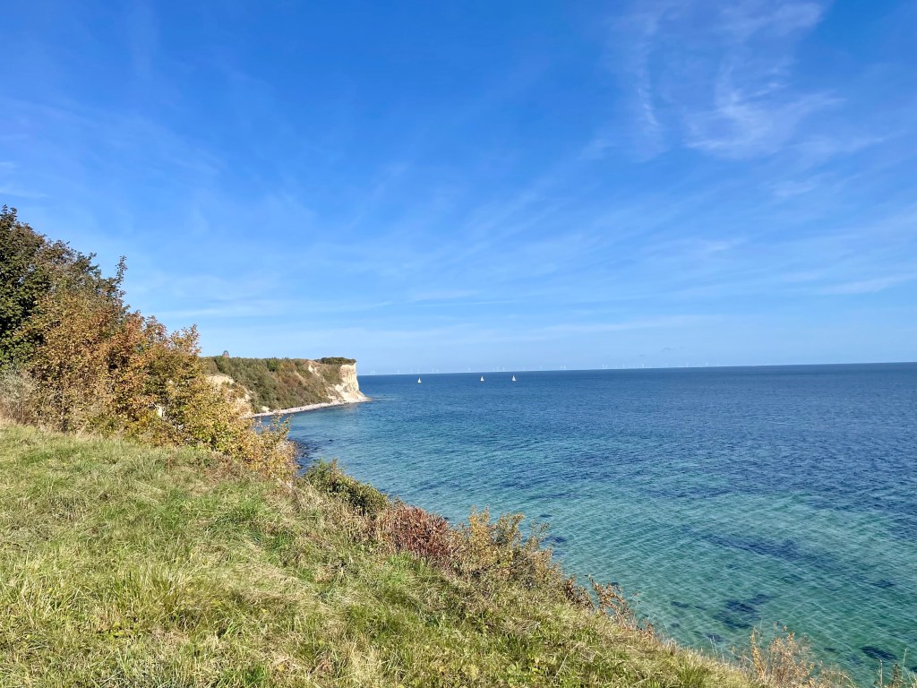 Wir kommen auf dem Rundweg um das Kap an zahlreichen kleinen Kunsthandwerkstätten vorbei, wobei fast überall Bernstein im Mittelpunkt steht. Bald sind wir wieder zurück in Putgarten, ein beschaulicher kleiner Ort der autofrei ist und daher besonders entspannt. Putgarten ist auch bekannt für seine kleine Künstler- und Handwerkergemeinde. Im Zentrum des Dorfes gibt es mehrere kleine Geschäfte, in denen lokale Kunsthandwerker ihre Arbeiten präsentieren und verkaufen. Hier findet man alles von handgefertigten Schmuckstücken über kunstvolle Holzarbeiten bis hin zu Gemälden, die die Küstenlandschaft und Natur der Region widerspiegeln. Besucher:innen können sich bei einem Bummel durch die kleinen Ateliers und Werkstätten umsehen, Souvenirs erwerben und mit den Künstlern ins Gespräch kommen.