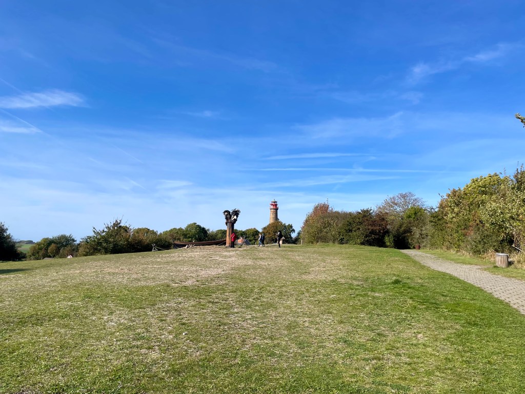 Nach dem obligatorischen Fischbrötchen wenden wir uns Richtung Kap Arkona, auf dem Weg oberhalb der Steilküste. Am markantesten sind die beiden Leuchttürme des Kap Arkona, die man schon aus einiger Entfernung ausmachen kann. Der ältere Leuchtturm ist nicht mehr in Betrieb. Er ist der zweitälteste Leuchtturm an der Ostseeküste und fungiert heute als Standesamt, Ausstellungsort und Aussichtsplattform. Den größeren der Leuchttürme, der immer noch sein Licht auf die Ostsee hinaus sendet, kann man ebenfalls besteigen und den fantastischen Rundblick genießen, bei klarem Wetter sogar bis hinüber zur dänischen Insel Møn. Gegenüber steht noch ein Turm, ein ehemaliger Marinepeilturm, der heute ebenfalls für Ausstellungen genutzt wird.