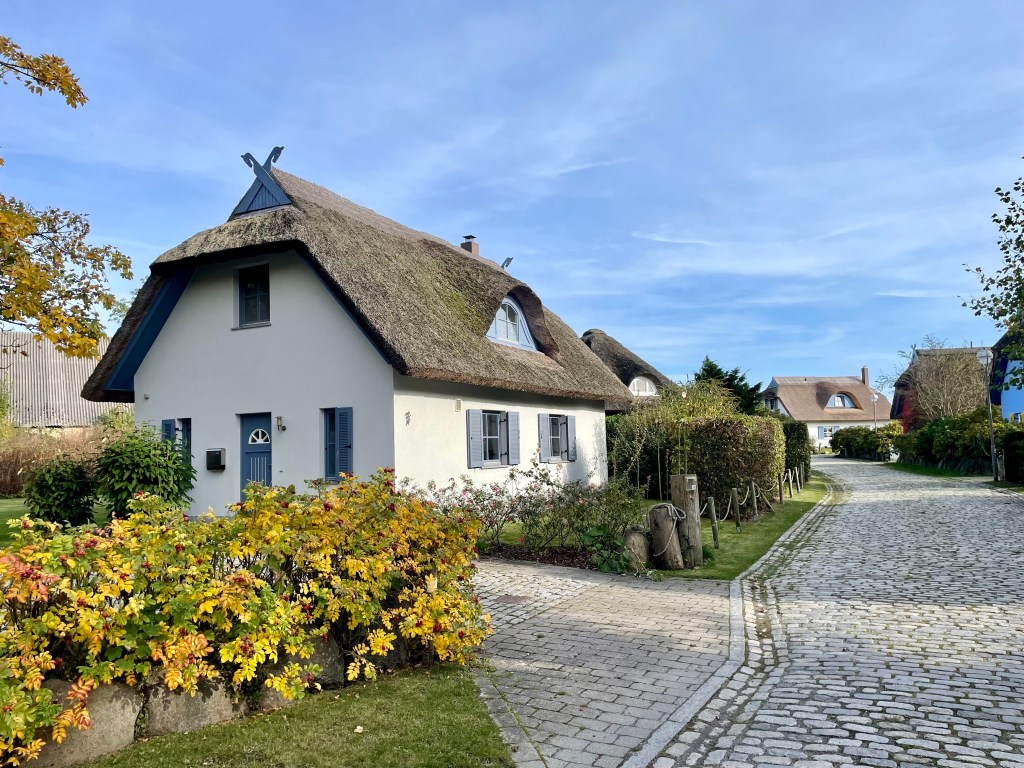 An unserem letzten Tag fahren wir die weiteste Strecke. Es geht ganz in den Norden der Insel zum Kap Arkona. Vom Parkplatz vor Putgarten spazieren wir ins kleine Fischerdörfchen Vitt. Mit seinen reetgedeckten Fischerhäusern, die sich an die Steilküste schmiegen, wirkt das Dorf wie ein kleines Freilichtmuseum. In Vitt gibt es eine kleine, achteckige Kapelle, die im 19. Jahrhundert gebaut wurde und heute ein beliebtes Fotomotiv ist. Als wir vorbei spazieren, hält grade eine Kutsche mit einem Hochzeitspaar vor der Kapelle.