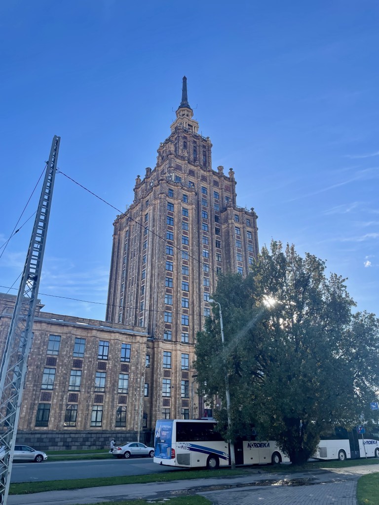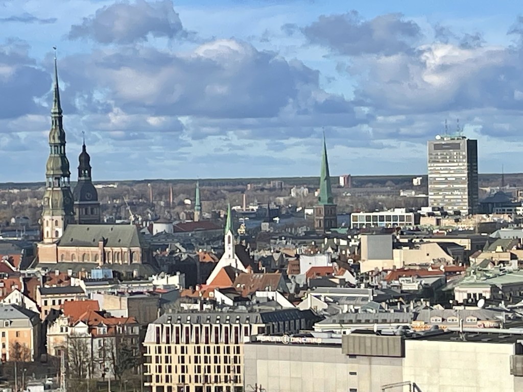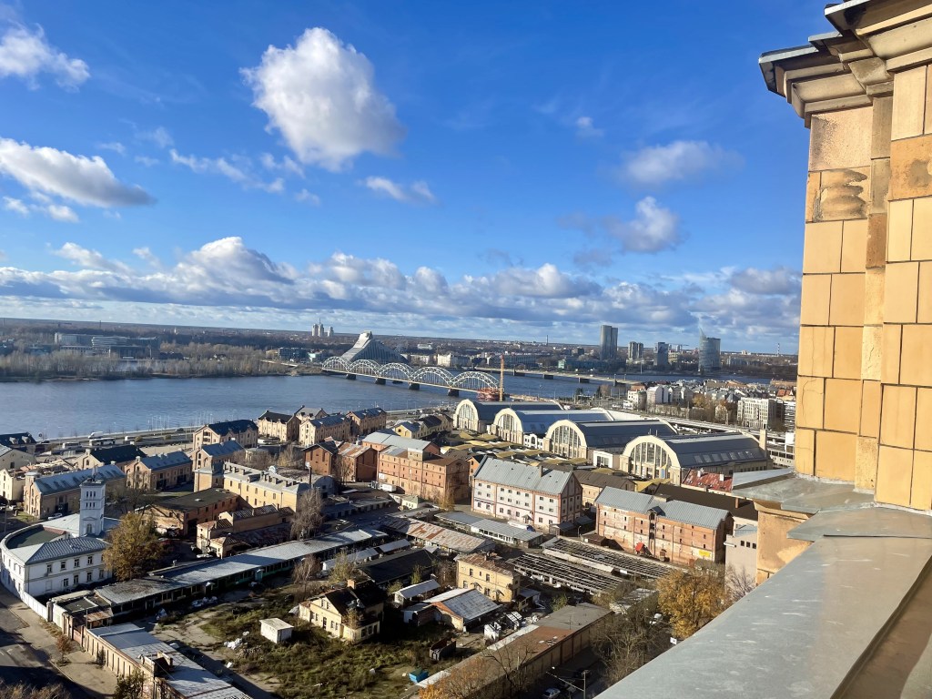 Unseren letzten Tag beginnen wir wieder mit dem üppigen Frühstück. Danach wollen wir auf die Aussichtsplattform der Lettischen Akademie der Wissenschaften. Der Eintritt ist zwar mit 8 € nicht gerade günstig, aber es lohnt sich allemal. Und das Wetter meint es heute gut mit uns. Es ist strahlend schön.