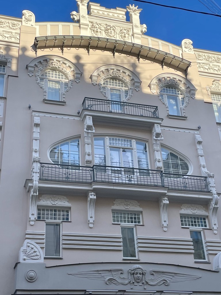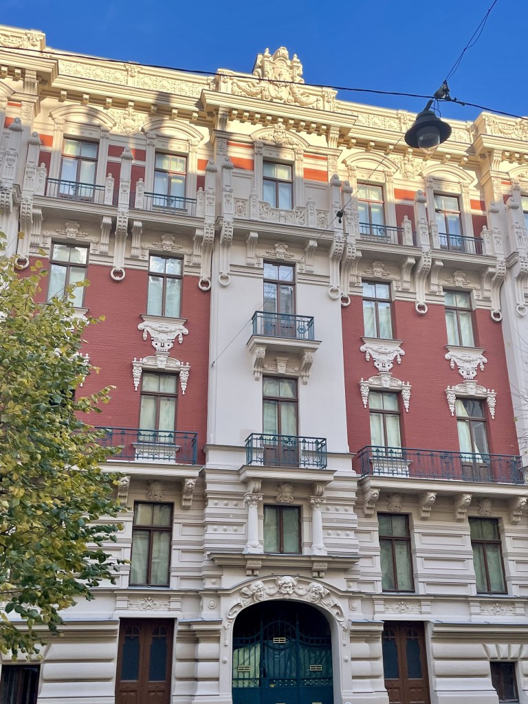 Mit dem Bus fahren wir dann noch zur Alberta iela, die bekannt ist für ihre Jugendstilarchitektur. Wir werden nicht enttäuscht – wunderschöne Jugendstilhäuser und sogar die österreichische Botschaft entdecken wir zufällig.