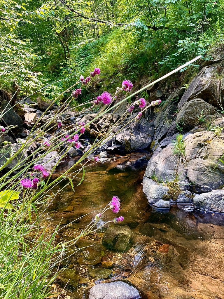 Wiedereinmal wandern wir durch den Wald hindurch eine Schlucht hinab, nicht so steil wie an Tag 1, aber doch ziemlich rutschig. Unten angekommen geht es eine Weile durch den Wald am Fluss entlang, doch bald lichten sich die Bäume und wir sind der prallen Sonne ausgesetzt. Die letzten Tage waren angenehm Kühl, daher hatten wir heute nicht mit dieser Hitze gerechnet. Immer wieder wird unser Weg von Geröll unterbrochen, das wir überqueren müssen.